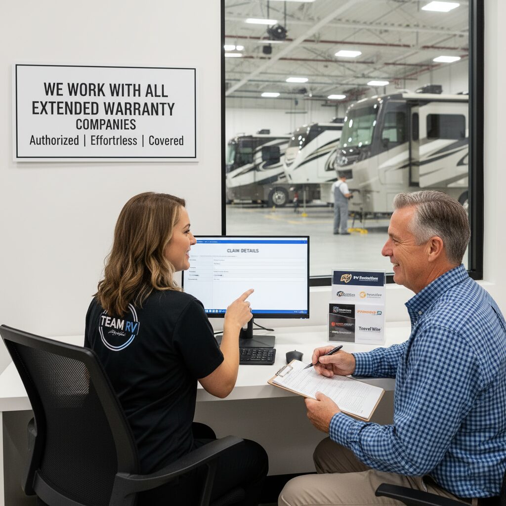In addition to manufacturer warranties, Team RV is experienced in working with all extended warranty companies. Navigating extended warranty claims can sometimes be complex, but our dedicated office staff is adept at streamlining the process. We will communicate directly with your extended warranty provider, handle the necessary paperwork, and ensure that your eligible repairs are covered, minimizing your out-of-pocket expenses and hassle.